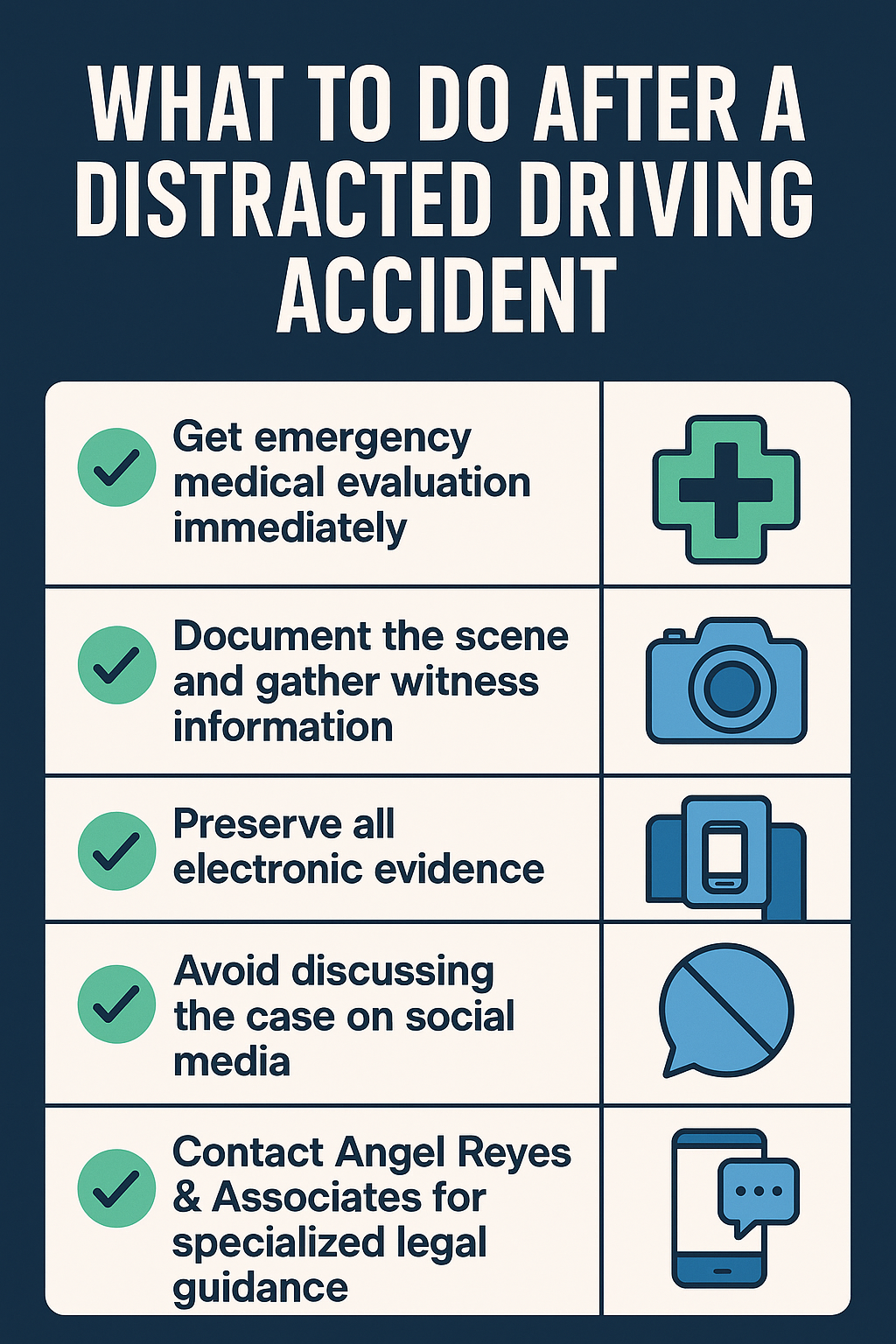 At Angel Reyes & Associates, we combine immediate evidence preservation with comprehensive case development. We build compelling distracted driving claims.