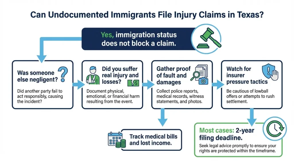 - Undocumented immigrants have the right to bring a Texas personal injury claim when another party's negligence caused real harm.