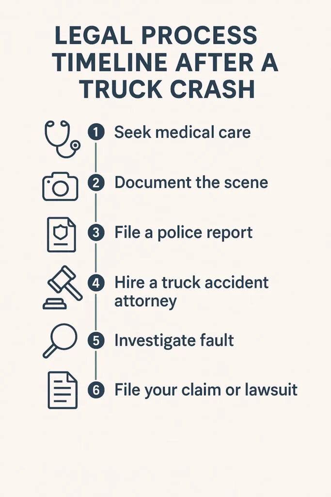 The stronger your documentation, the more leverage your truck accident attorney has. We recommend securing: